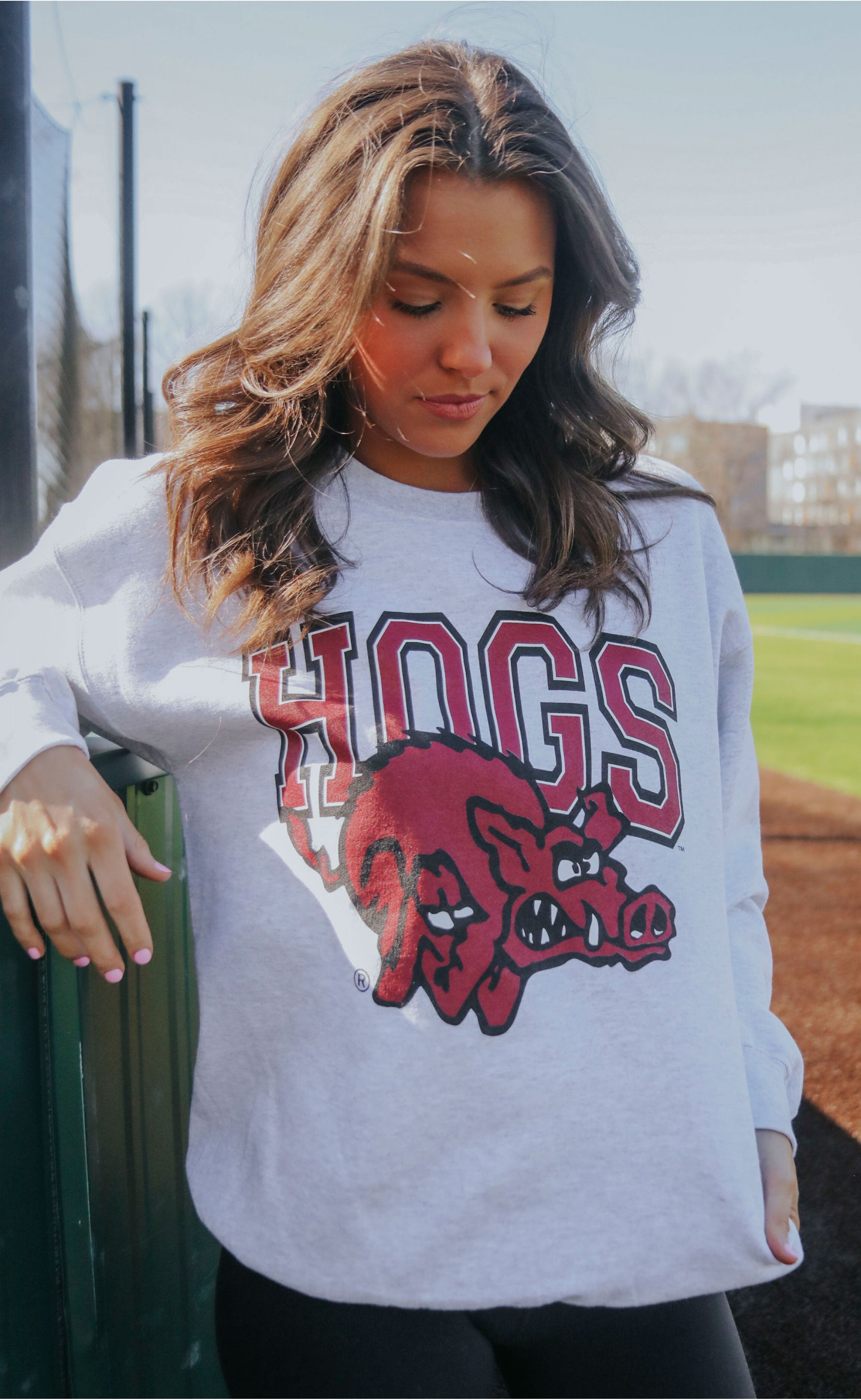 ATTN: all Hog callers! Get ready to ring in the season in style with this perfect sweatshirt made just for you. Whether you're cheering from the stands or showing off your team spirit around town, this cozy sweatshirt is guaranteed to be a best seller. Featuring a bold design and the iconic rally cry—WOOOOO PIG SOOIE!—you’ll be the ultimate fan wherever you go.