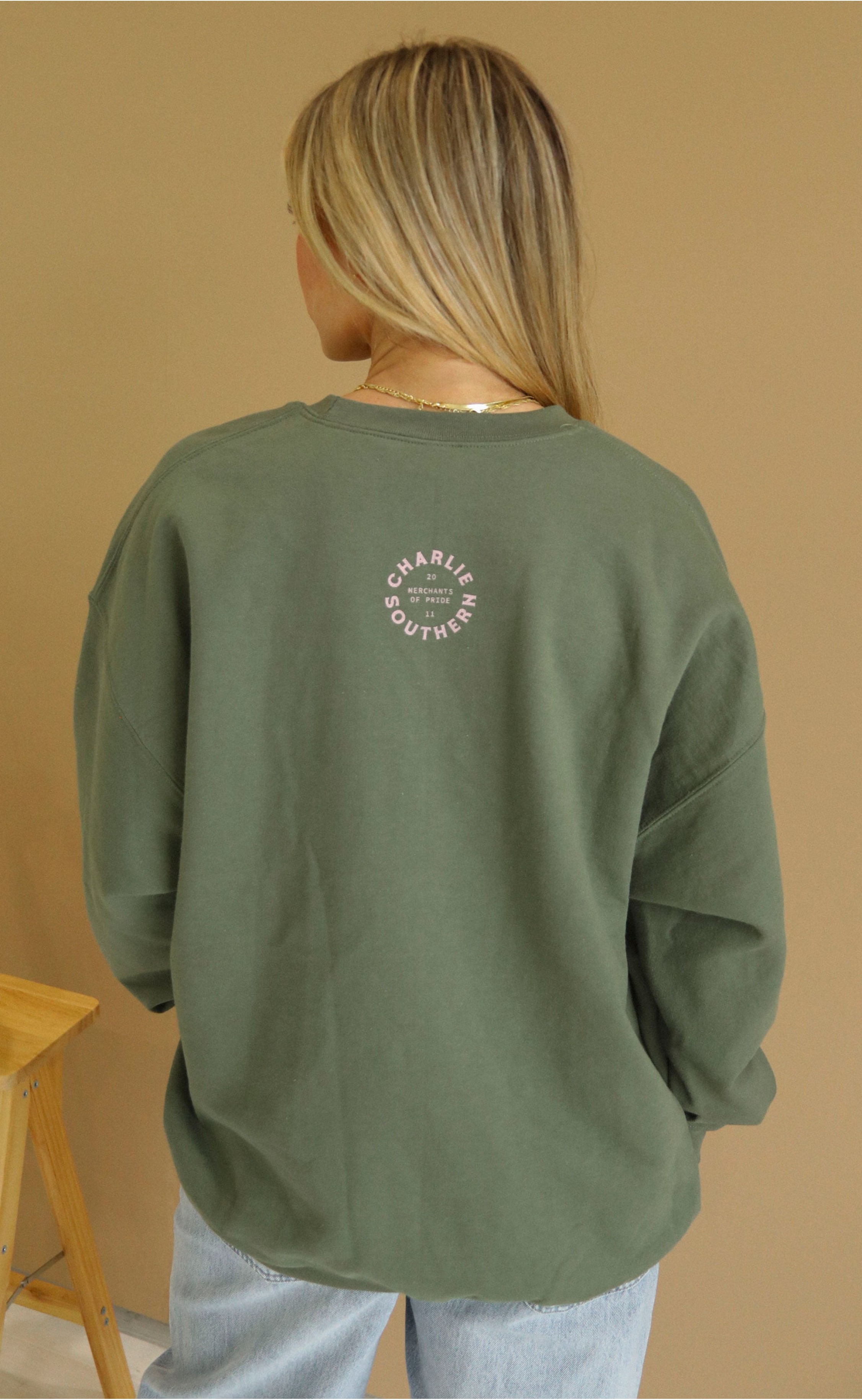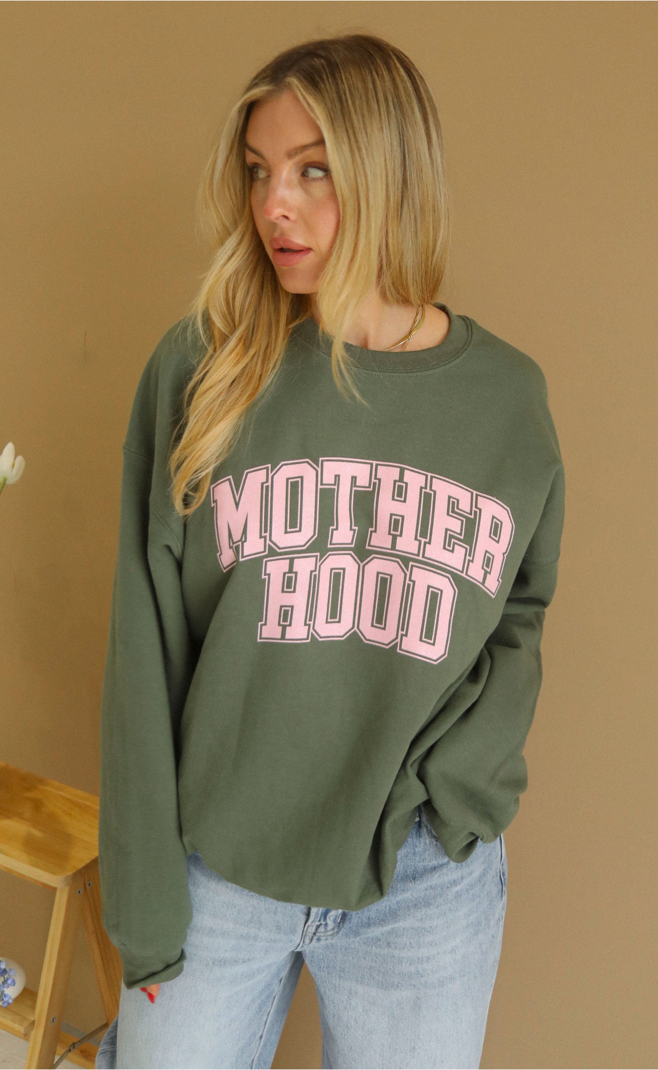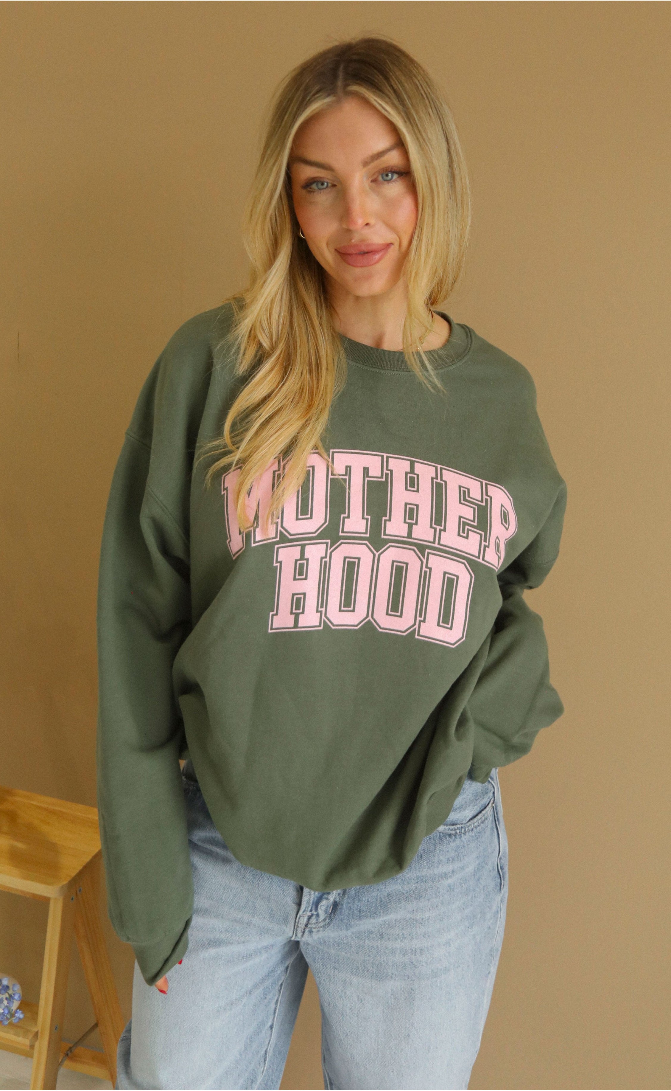 The coolest “hood” around! This evergreen sweatshirt features a playful bubblegum pink font that really pops against the rich green background. Perfect as an easy, cozy go-to for running errands or a cute and comfy choice for the school pick-up line. A must-have casual staple for every mom on the move!