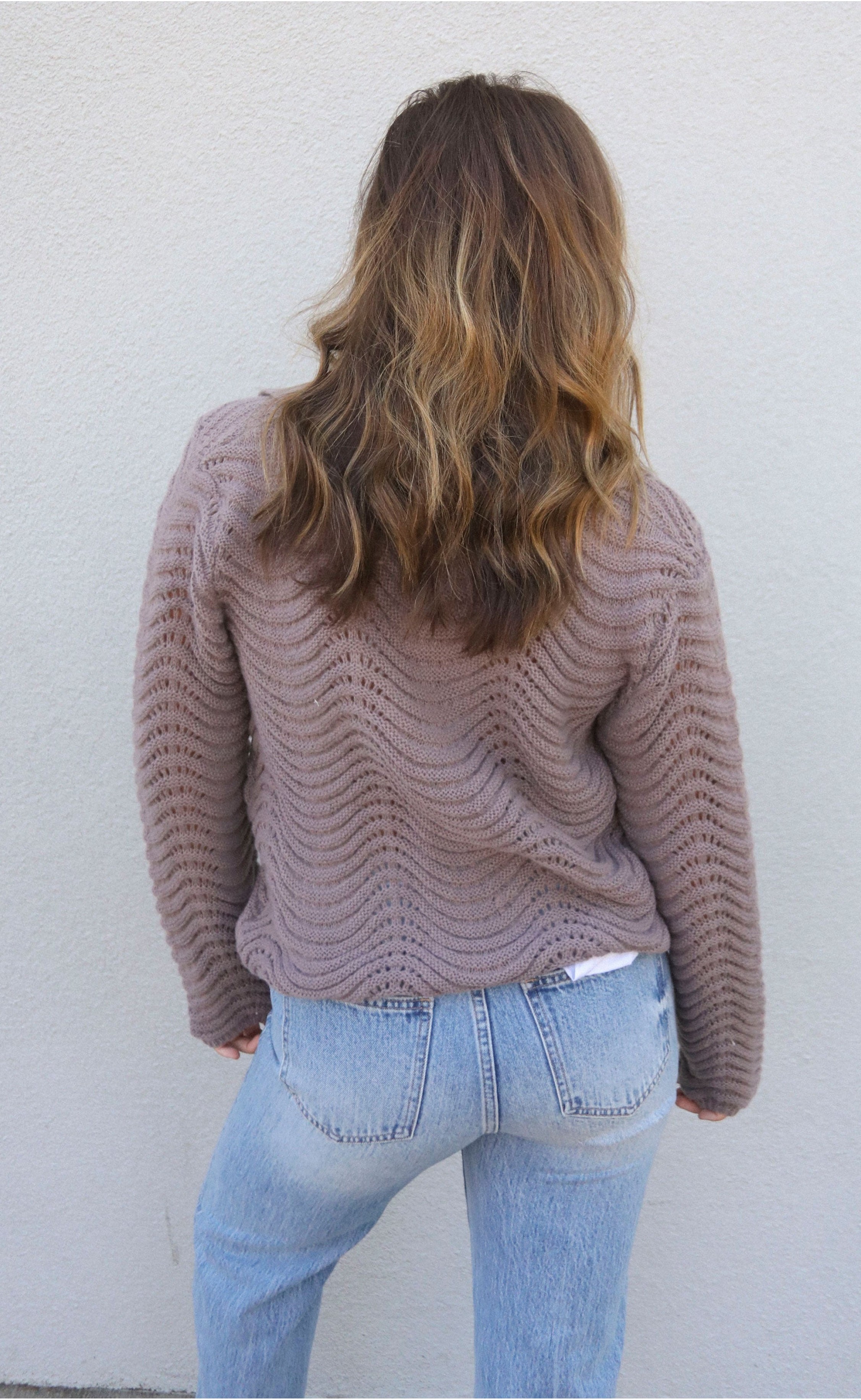 For those who appreciate the finer things in life, this warm coffee brown sweater is a cozy yet sophisticated choice. Designed with an oversized collar that beautifully frames the neckline and a curved knit pattern that adds subtle texture and elegance, this sweater is perfect for elevating your everyday style. Whether paired with jeans or layered over your favorite skirt, it’s a versatile piece you’ll love to wear all season long.