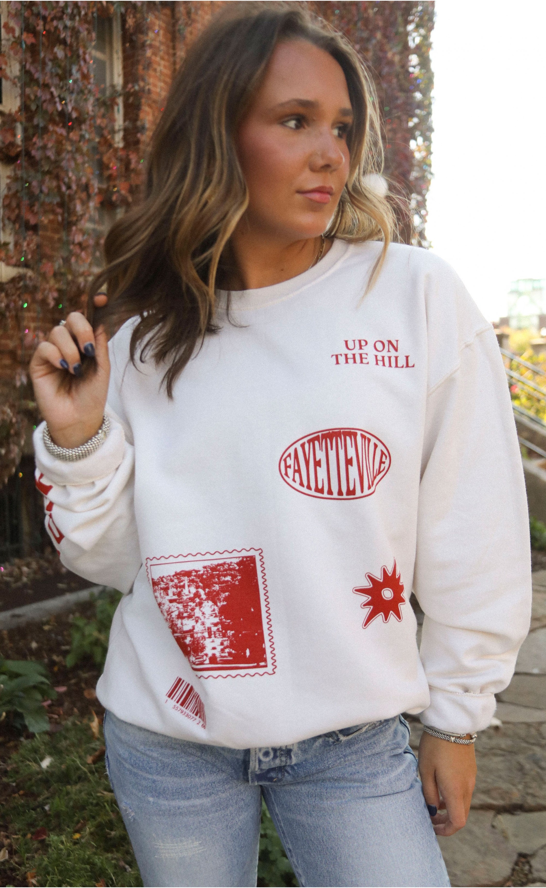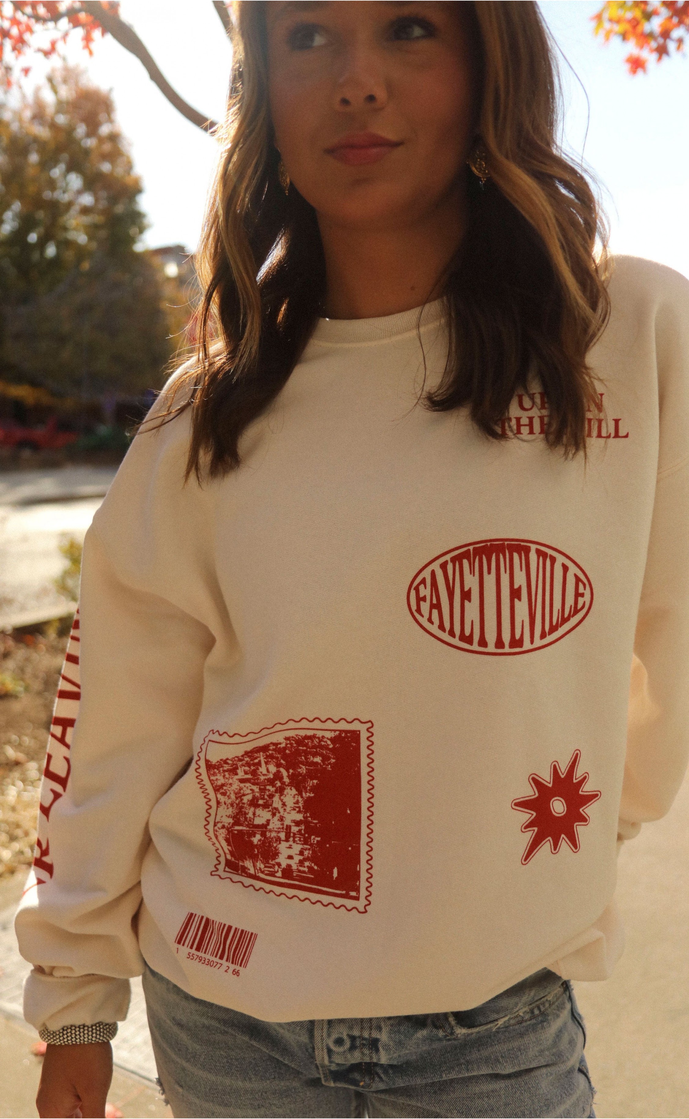 Once you experience Fayetteville, you’ll never want to leave—and this sweatshirt says it all. Whether you're a local, a student, or just passing through, Fayetteville leaves a lasting mark. This cozy, soft crewneck features a standout graphic and unique icon sleeve detail that makes it extra special. It's the perfect piece to show your love for your favorite town.
