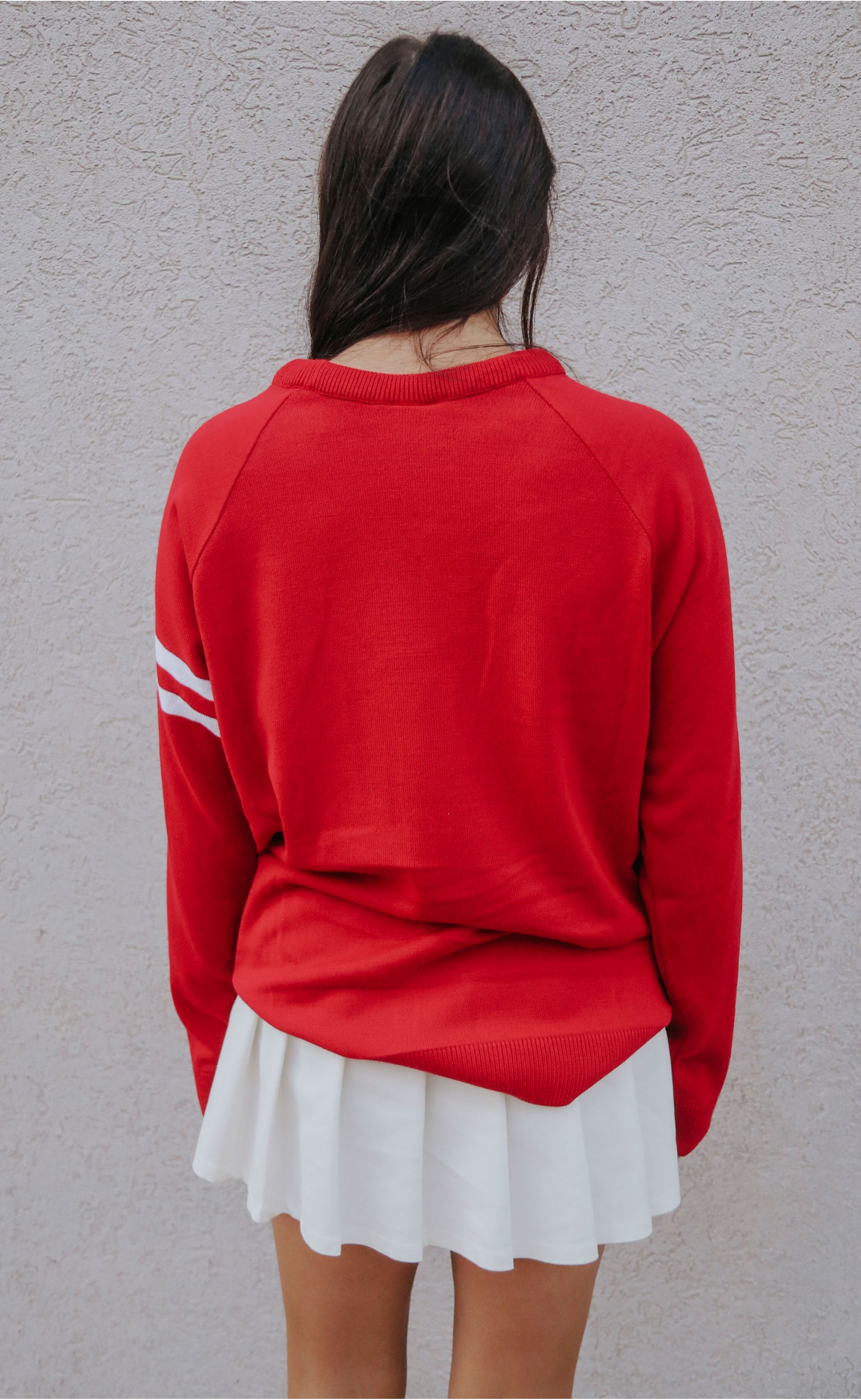Crafted from 100% acrylic, this sweater delivers warmth without the weight, keeping you comfortable through chilly fall tailgates and crisp winter mornings. The long sleeves, relaxed fit, and mid-weight knit make it a versatile layering piece that looks just as good under a stadium jacket as it does styled solo with jeans or leggings.