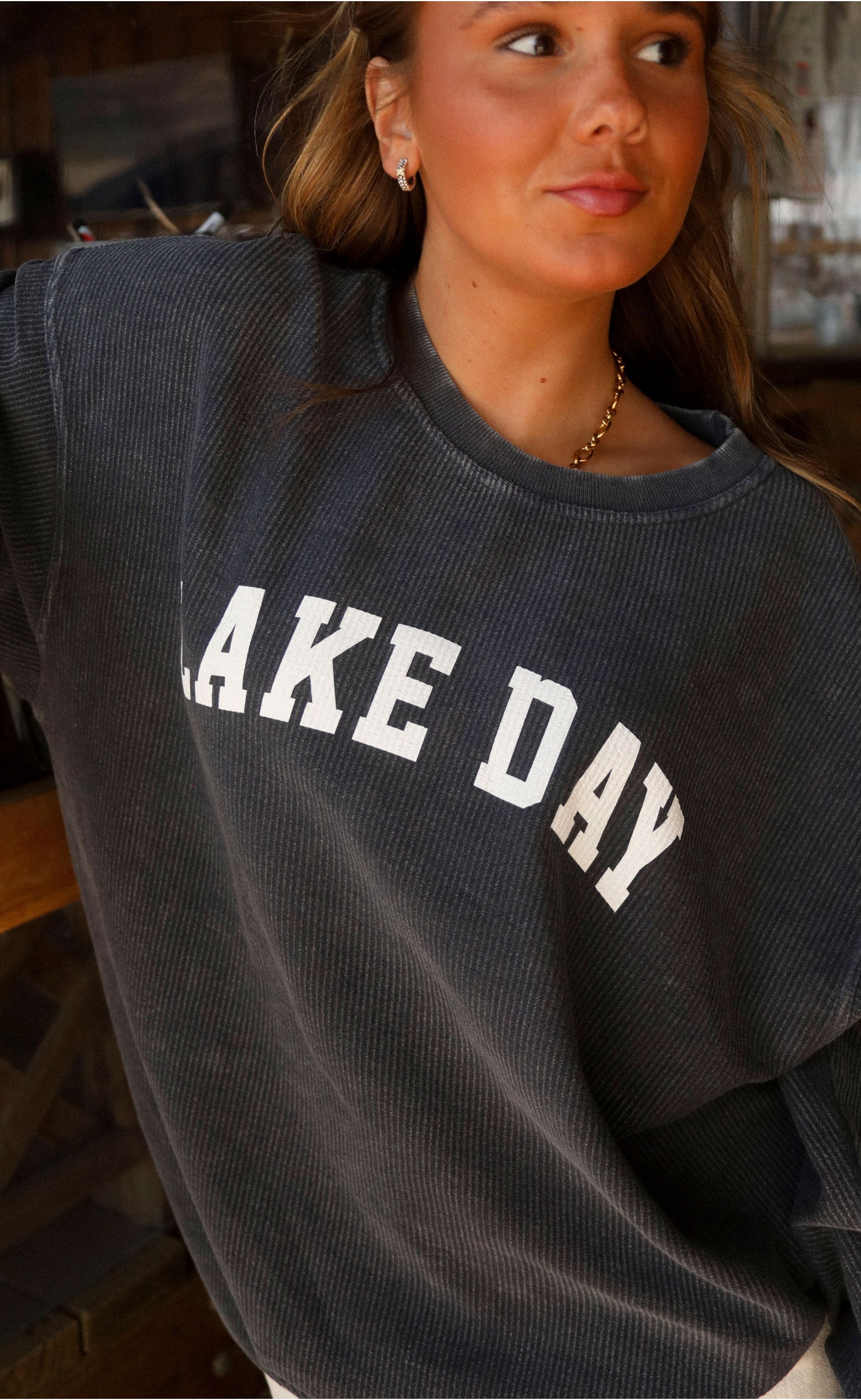 Dreaming of endless summer days by the water? Us too! This fan-favorite navy corded sweatshirt features a timeless block print “lake day” — perfect for every boat babe or captain ready to make waves. With a cozy, unisex fit, it’s your new go-to for lake adventures, bonfires, and everything in between. Get ready to make this your best-selling staple for all things summer!
