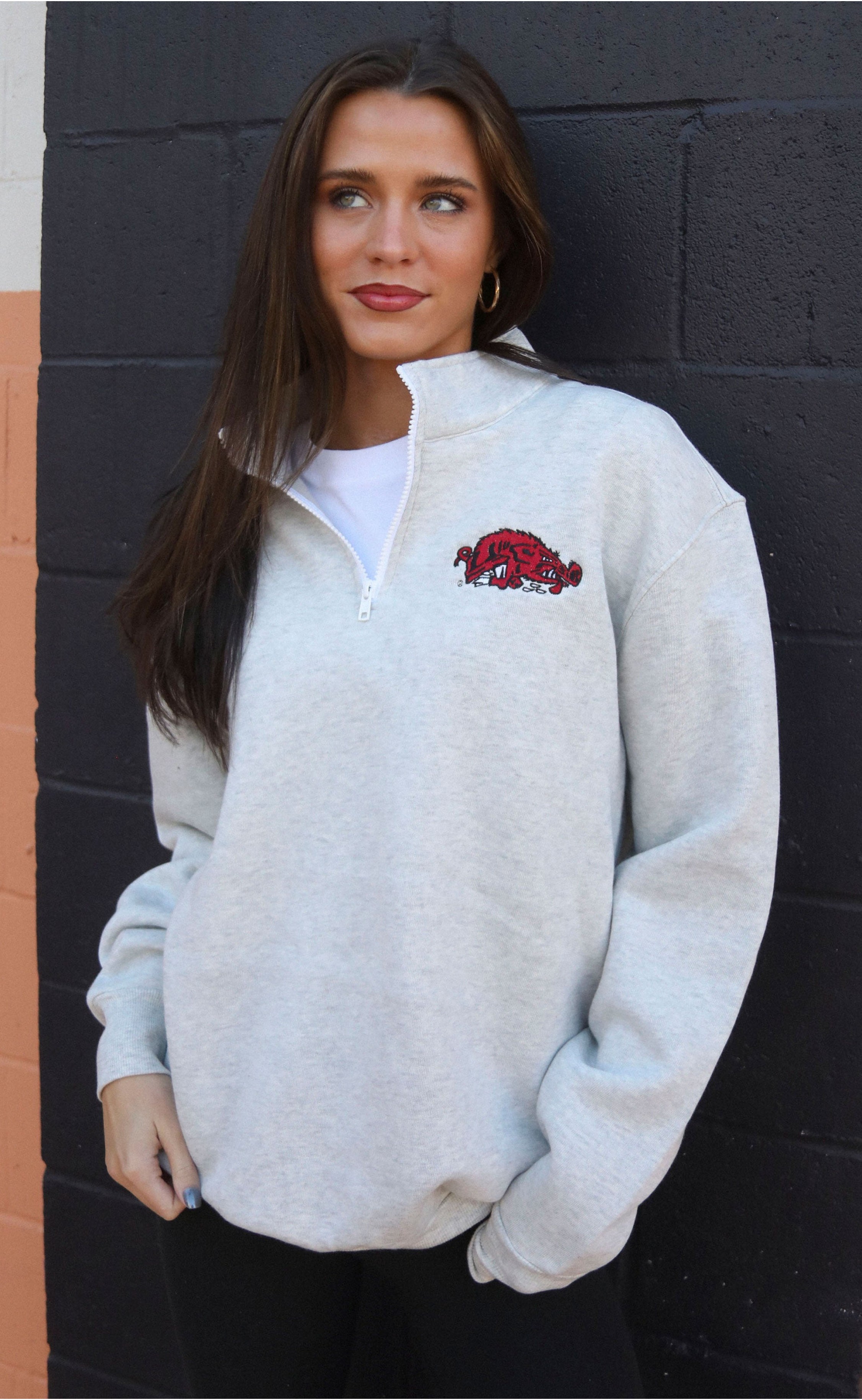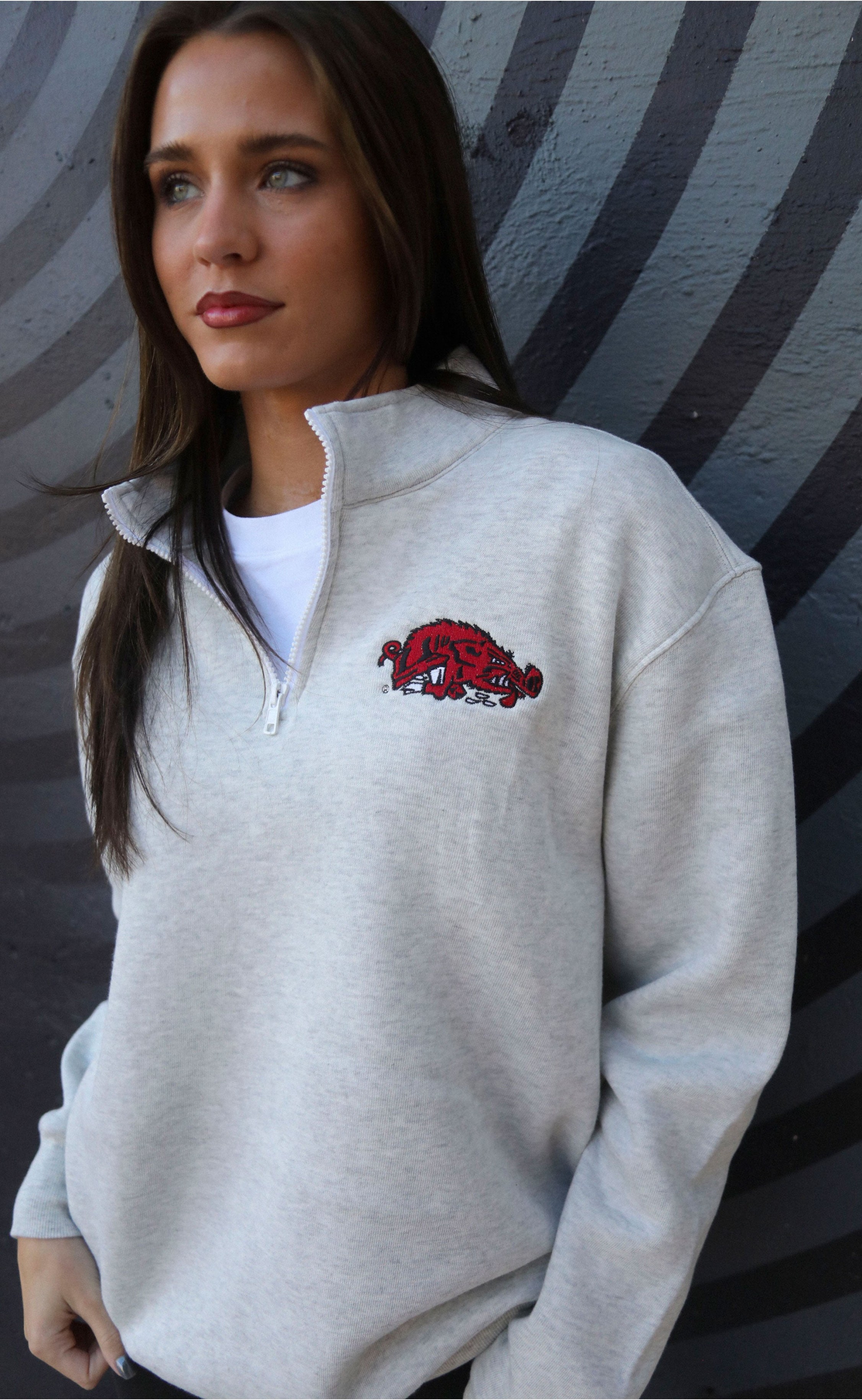 Stay Warm and Stylish with the Arkansas Running Razorback Quarter Zip Sweatshirt