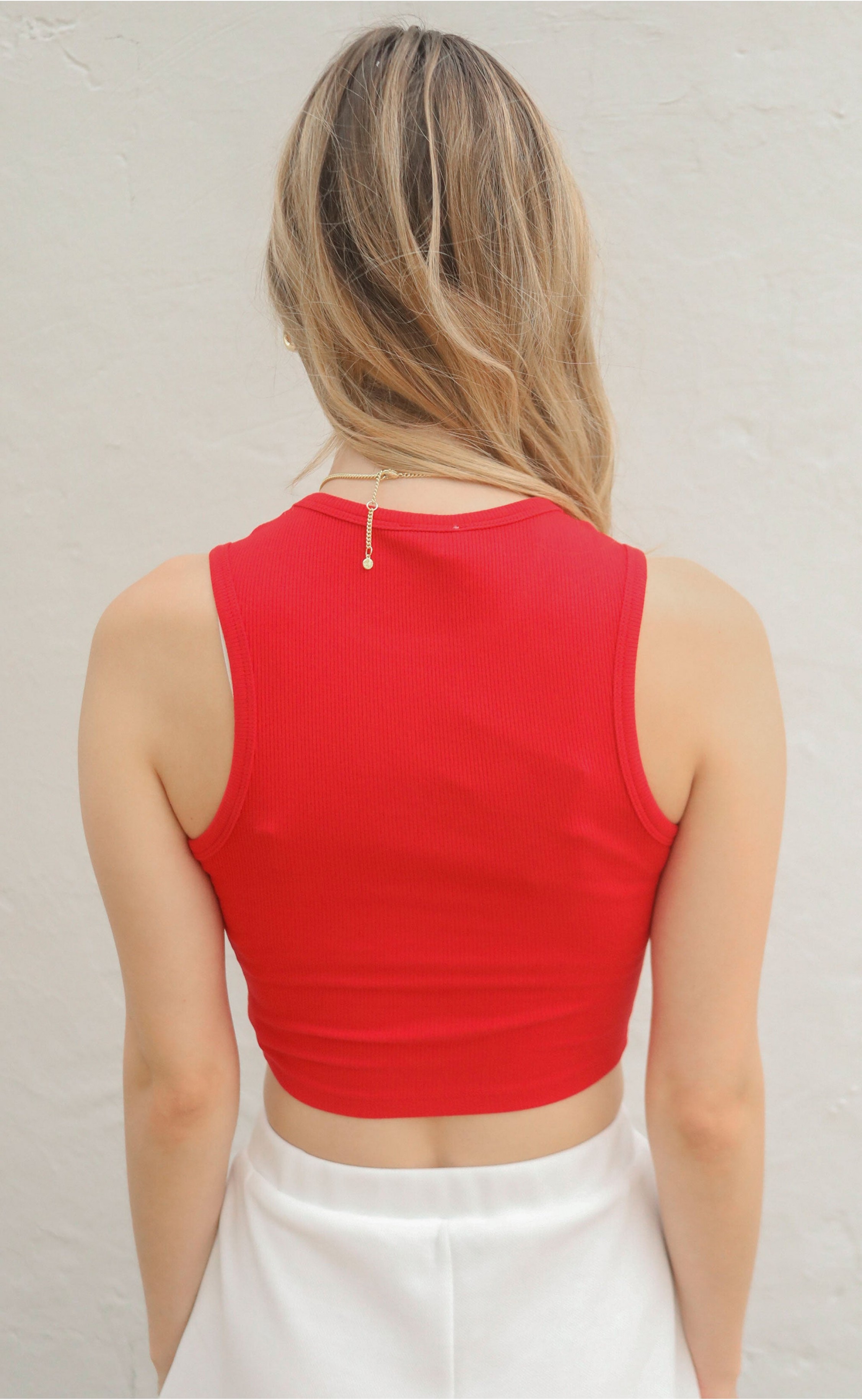You can never have too many basic tanks — especially when they come in a bright, bold cherry red! The Never Left Me Top is a sleek, racerback cropped tank designed with a fitted bodice that hugs your curves in all the right places. Its cropped hem makes it perfect for showing off a little midriff, while the vibrant color adds a pop of fun to any outfit.